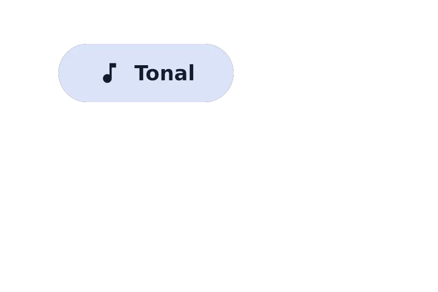 A TonalButton is a button with a secondary container background, used for less prominent actions than filled or elevated buttons.